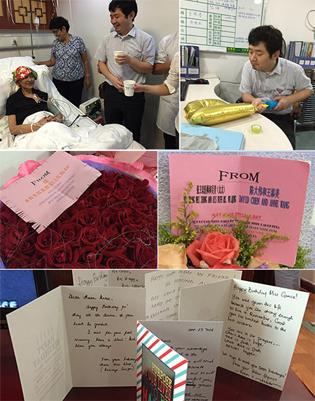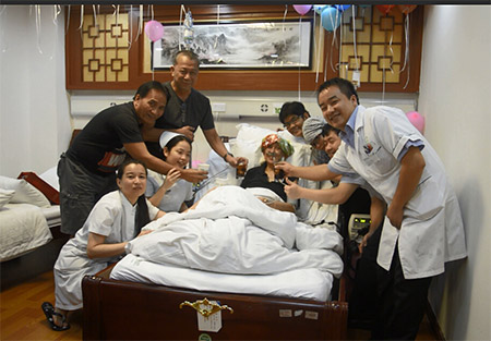 9月27日,是中国的传统佳节——中秋节。按照传统习俗,这一天,理应是每个人都和自己的亲人爱人团聚,人月两团圆的日子。但这一天,恰逢菲律宾患者格蕾丝的生日!为了完成格蕾丝丈夫为给妻子留下美好回忆的愿望,(中新合资)广州圣丹福医院众多工作人员,包括格蕾丝主治医生、主任,责任翻译、策划(后勤)人员等,全都决定推后与家人团聚的时光,陪格蕾丝在病房度过了一个难忘的生日。