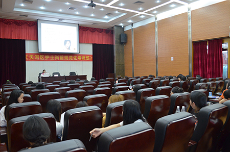 4月26日,(中新合资)广州圣丹福医院护理部主任何亮琼应天河区卫计局邀请开展护士岗前服务礼仪培训。本次培训主要讲述日常护理工作中应该注意的服务礼仪,并以良好的礼仪状态给患者提供温馨舒适的服务。参加培训的是来自天河区各医院新上岗的护士,共计90余人。