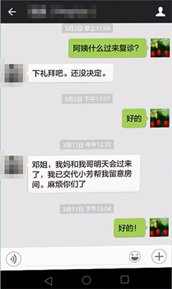 比赛中,肖娟护士长介绍了典型案例,如微信聊天截图、QQ聊天截图等来呈现互联网形式延续护理服务的操作模式。给患者提供的护理服务体现在日常治疗工作中的方方面面,如为患者过生日、庆祝传统节日等都让患者十分感动。