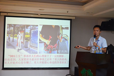 本次培训的主题是“增强消防科学发展观念 普及消防安全教育知识”。刘教官通过近期全国各地的火灾案件进行讲解,例如广州市居民楼起火、厦门公交起火、吉林宝源丰火灾、佛山南海区桂城汽修店火灾等重大火灾事件引人深思。