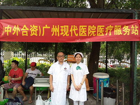 (李旭声医生、古秋霞护士医疗服务站现场图)