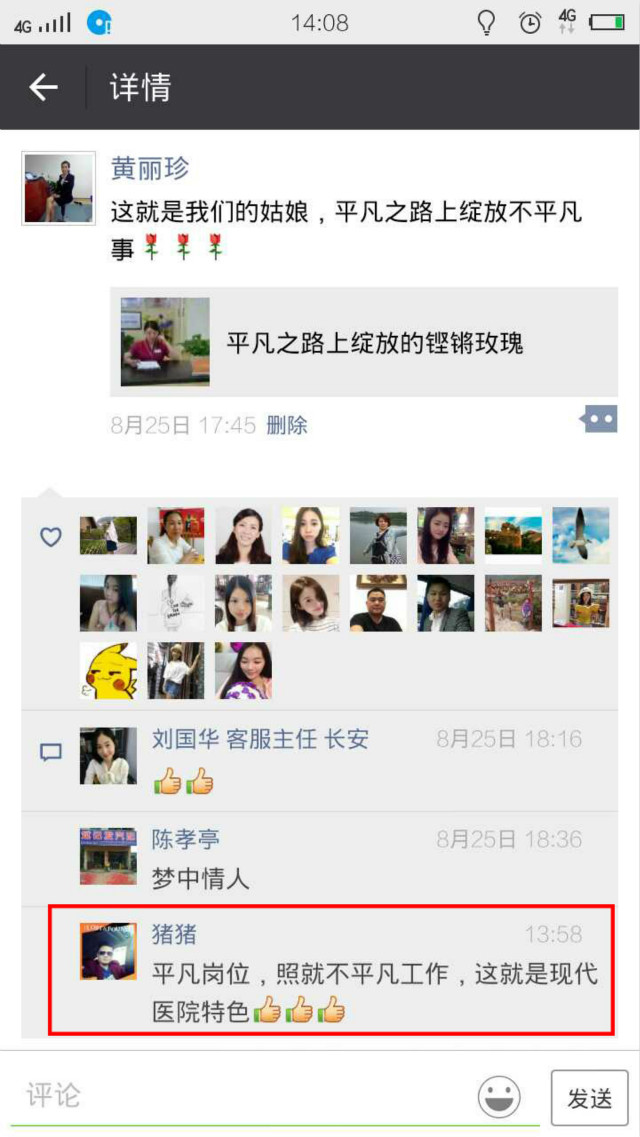 客服经理黄丽珍的朋友称赞服务之星徐瑞滢“在平凡的岗位上造就不平凡的工作”。每一个岗位都是平凡的,但把平凡的工作做好了就是不平凡。徐瑞滢的点滴积累服务了每一位来求诊的患者,这就是她的不平凡之处。