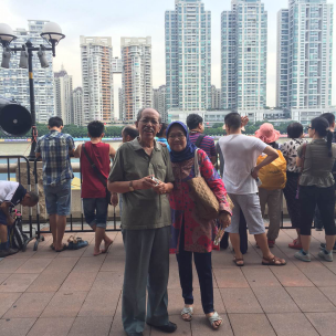 来自印尼的乳腺癌患者高美达家属这一天也一改往日的沉默变得活跃了起来。就在众人翘首以盼等待龙舟比赛开始时,他们却在美丽的珠江边玩起了合影。据了解,高美达的父母曾经也来过广州,而且对中国的传统文化尤为喜爱。因此对于这一次能亲眼观看富有中国特色文化的龙舟竞技赛,他显然十分激动。
